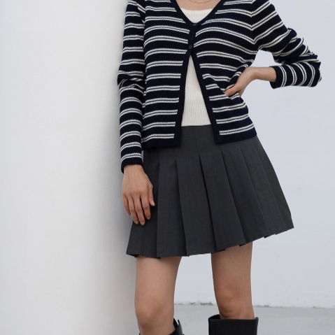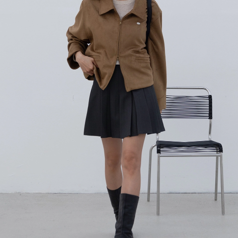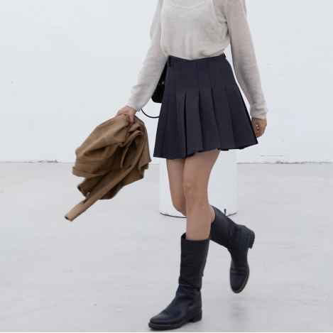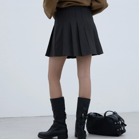 COTTON PLEATS MINI SKIRT CHARCOAL
