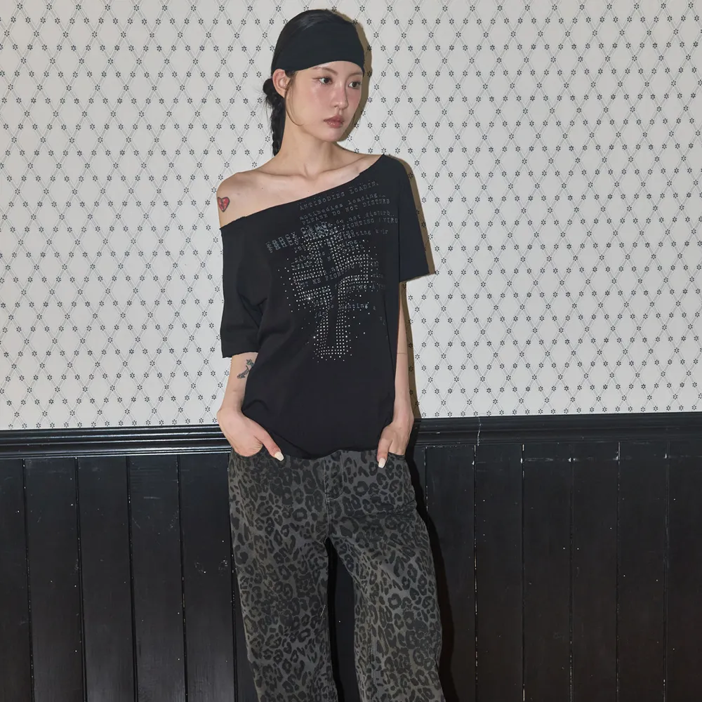 DIVINE CROSS ONE-SHOULDER TEE BLACK