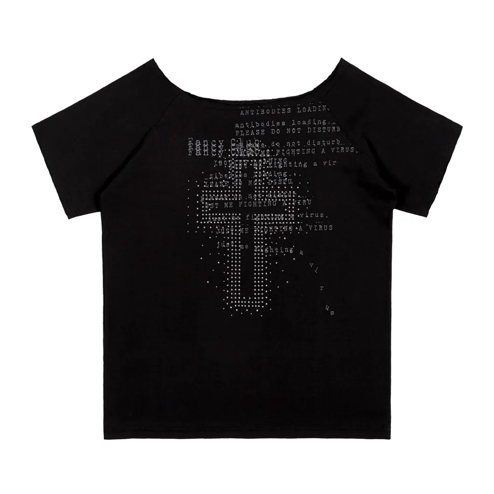 [ALAND] FANCY CLUB - DIVINE CROSS ONE-SHOULDER TEE BLACK Model Code: 6252TS2091 Color: BLACK Material: COTTON 100 MA...