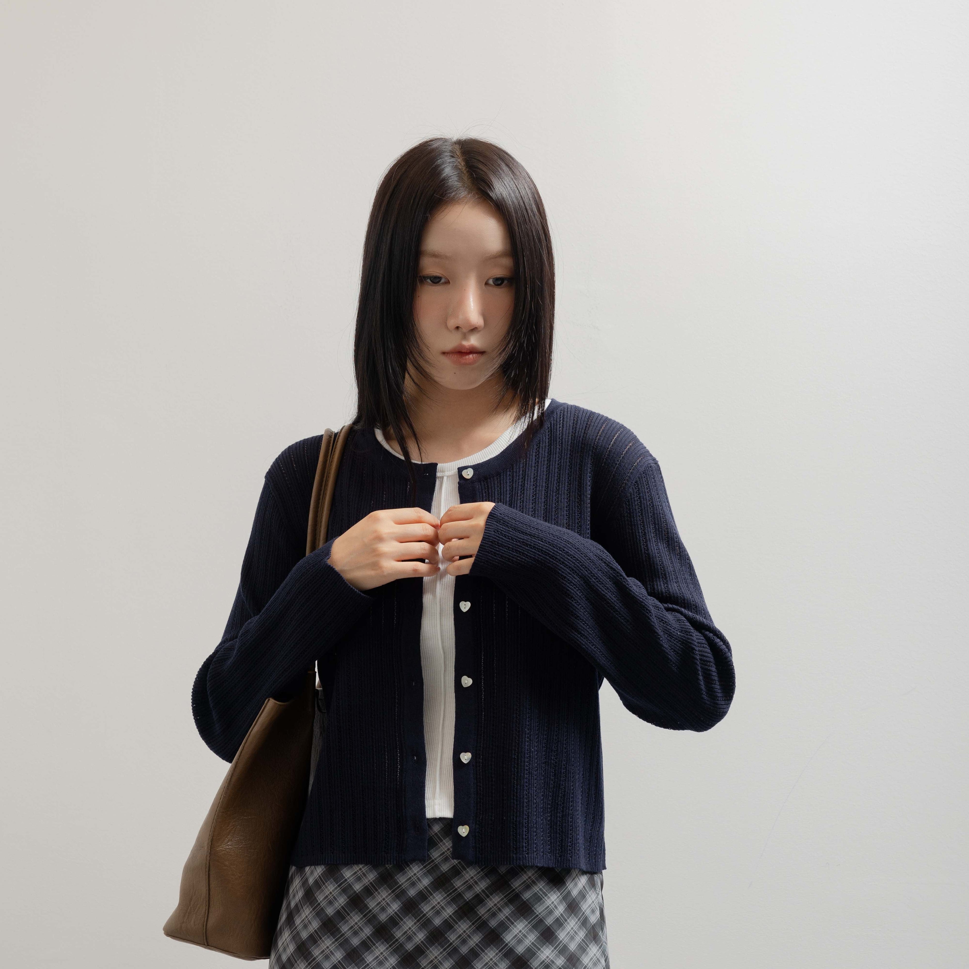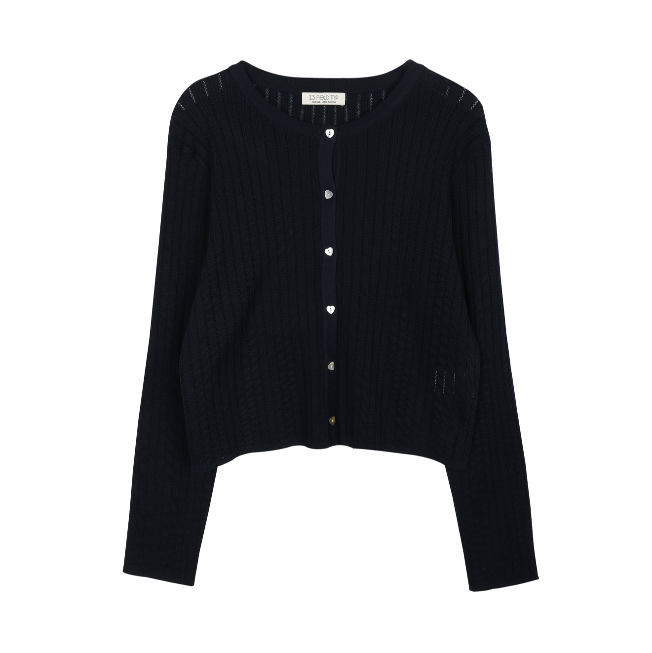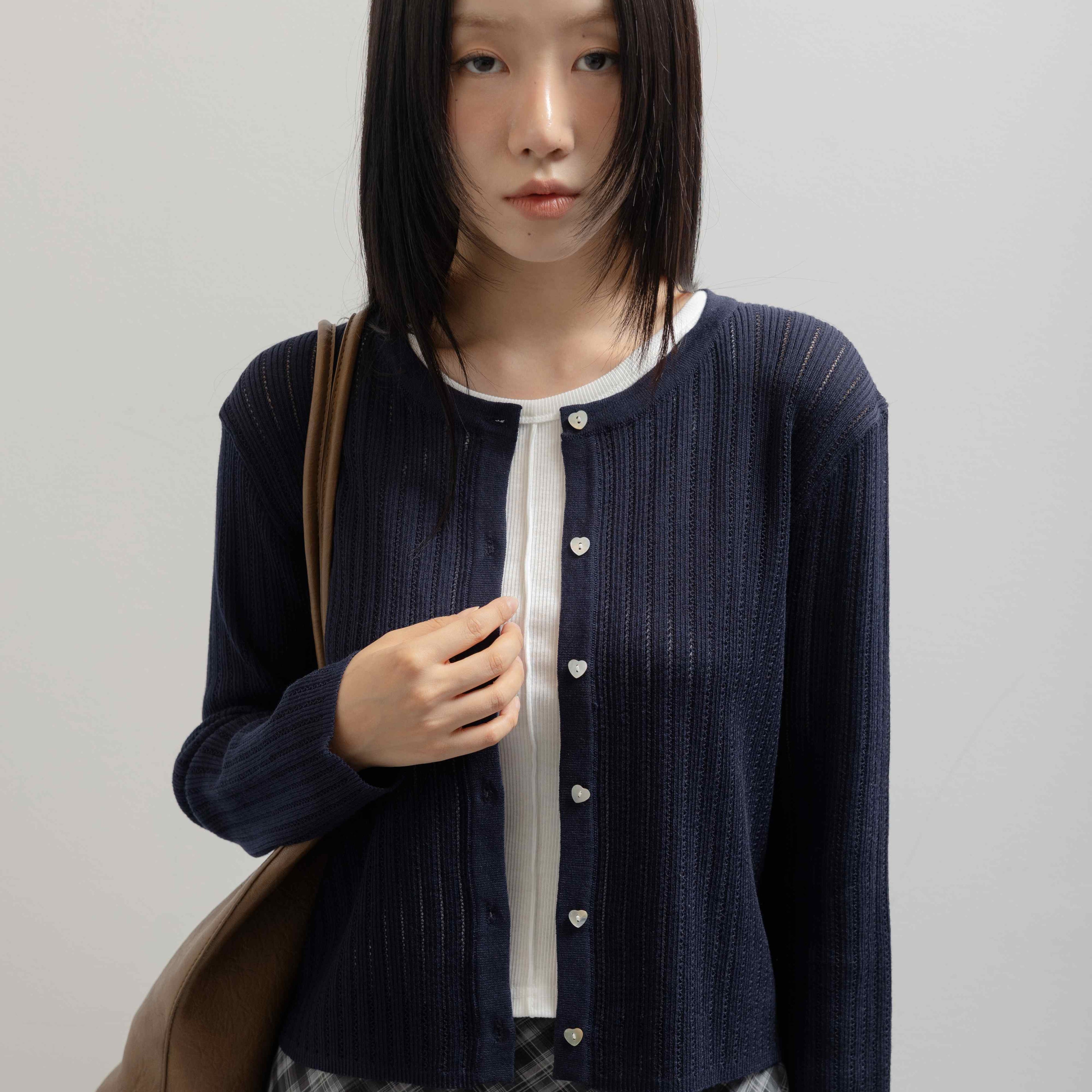 [ALAND] 3.3 FIELD TRIP - HEART BUTTON WOOL CARDIGAN NAVYModel Code: 2253KC2003Color: NavyMaterial: WOOL5% ACRYLIC18% ...