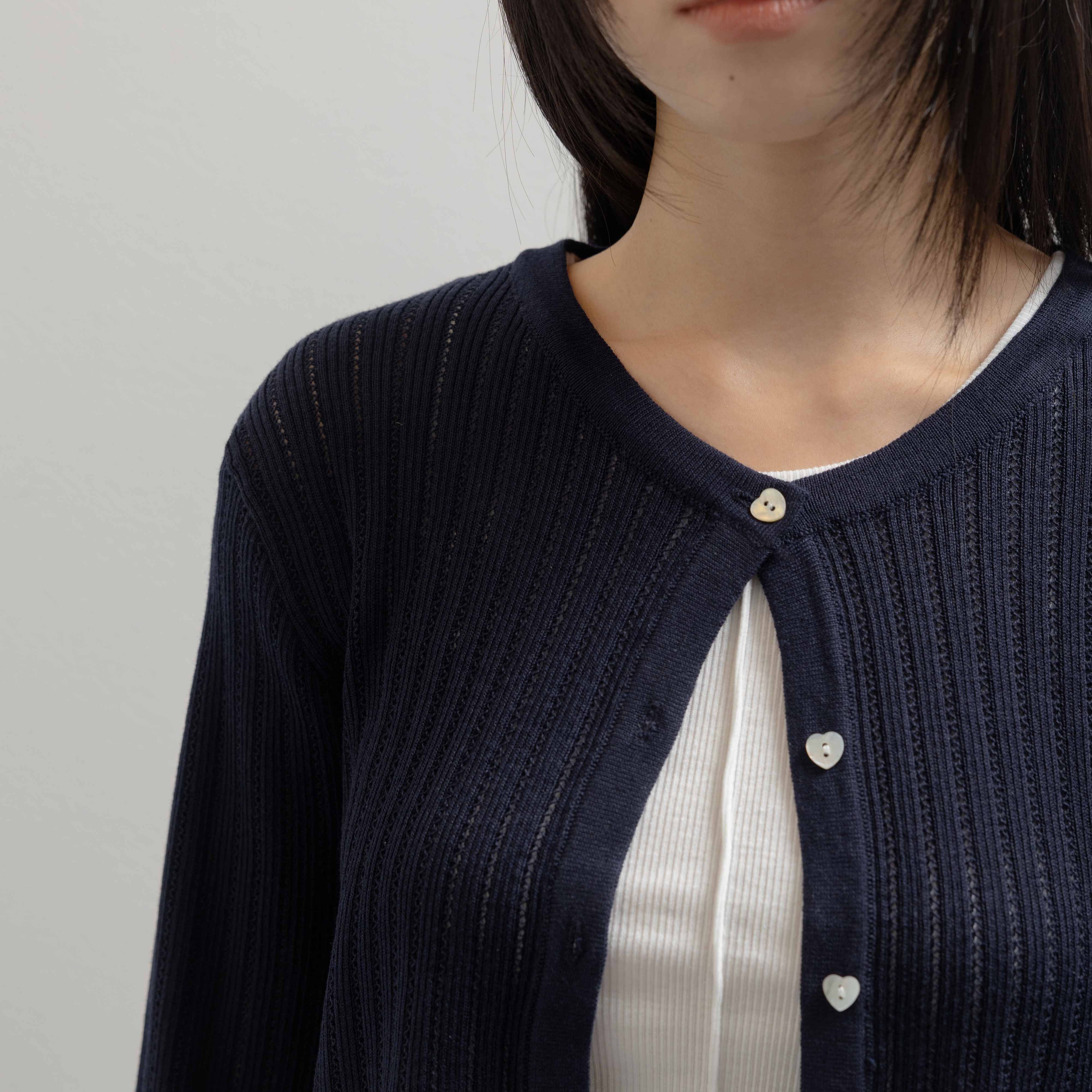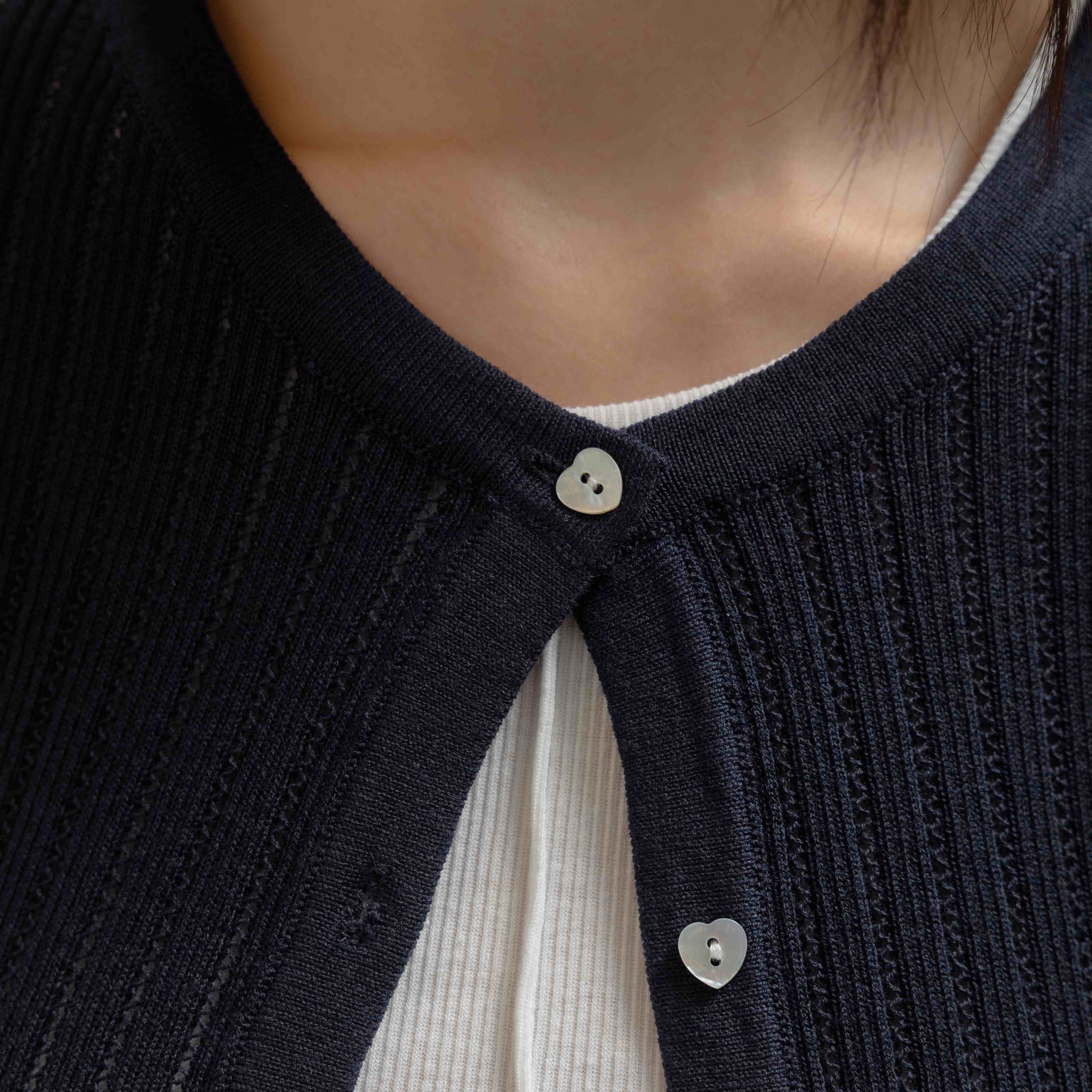 HEART BUTTON WOOL CARDIGAN NAVY