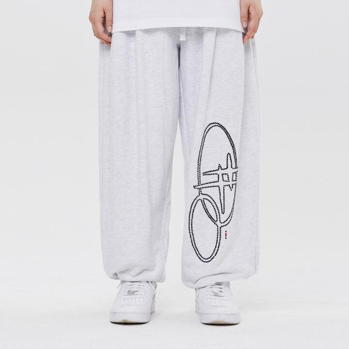SHINING SPANGLE LOGO PANTS LIGHT GREY