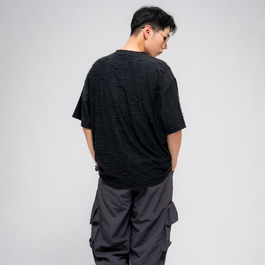 MEN'S FRAYED TEXTURE T-SHIRT BLACK