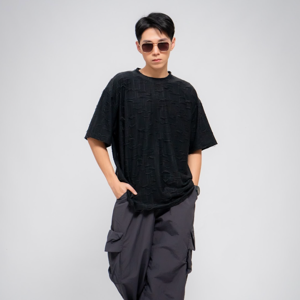 [ALAND] LAND MUSEUM - MEN'S FRAYED TEXTURE T-SHIRT BLACKModel Code: 2253TS1006Color: BlackMaterial: POLYESTER95% SPAN...