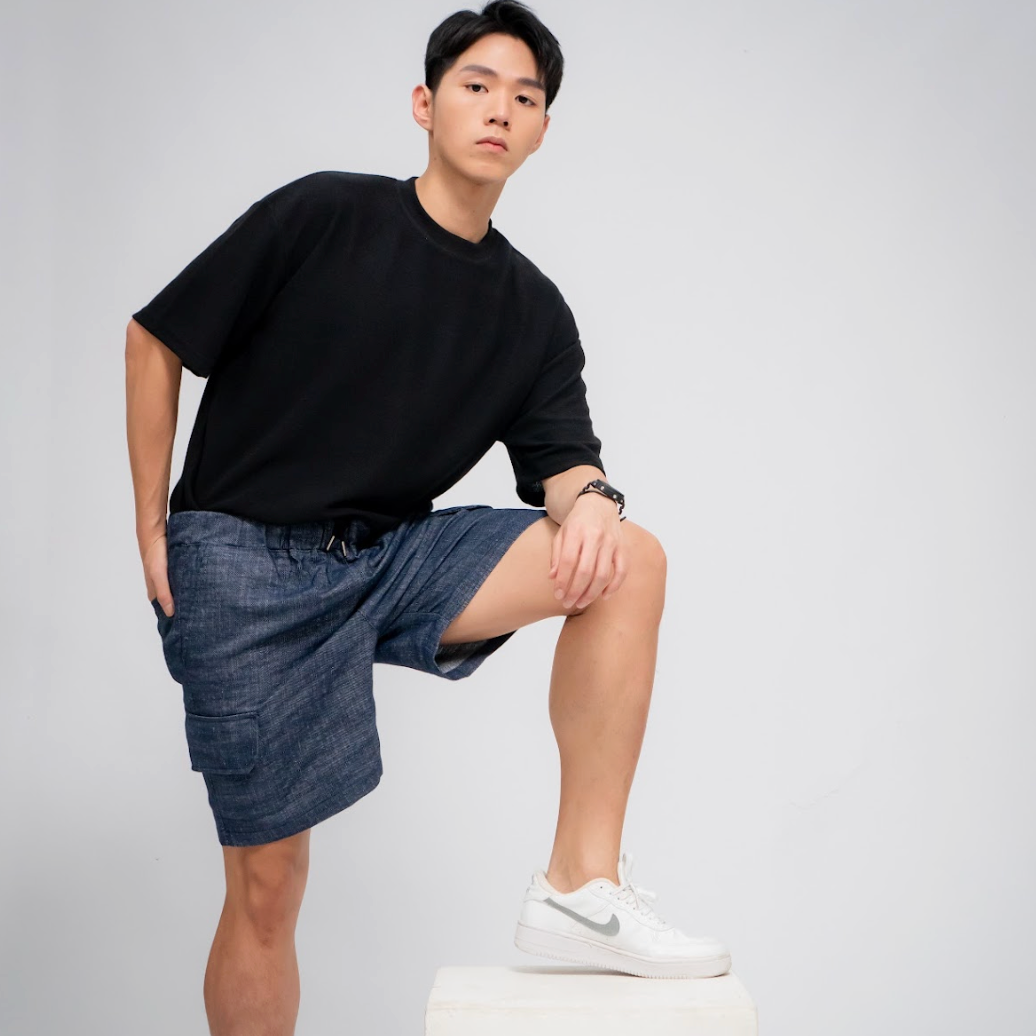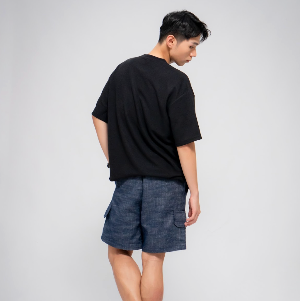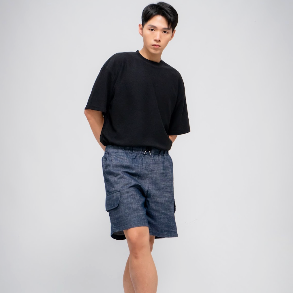[ALAND] LAND MUSEUM - MEN'S LINEN BLEND SHORTS DARK BLUE